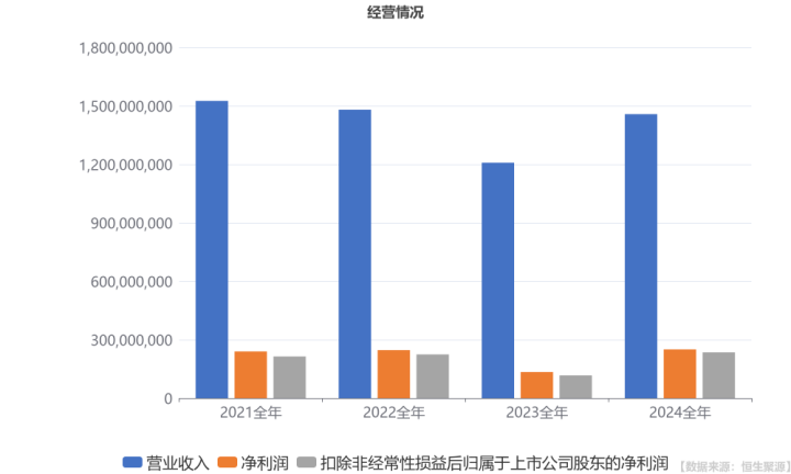 上证报中国证券网讯西安瑞联新材料股份有限公司(688550)发布业绩快报,公司2024全年实现营业总收入145753.83万元,同比上升20.64%;实现归属于上市公司股东的净利润25029.50万元,同比上升86.53%;扣除非经常性损益后归属于上市公司股东的净利润为23491.96万元,同比上升101.33%;基本每股收益1.44元/股,同比上升46.94%。